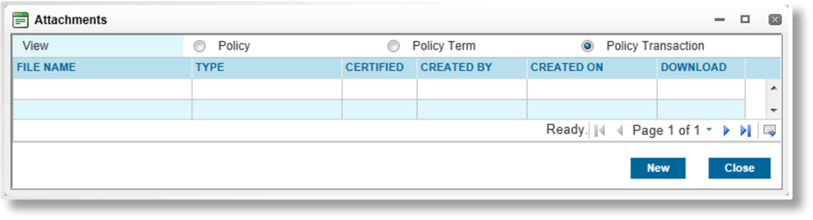 Note: Attached files are only attached to the current policy. They are not transferred if the transaction is copied.