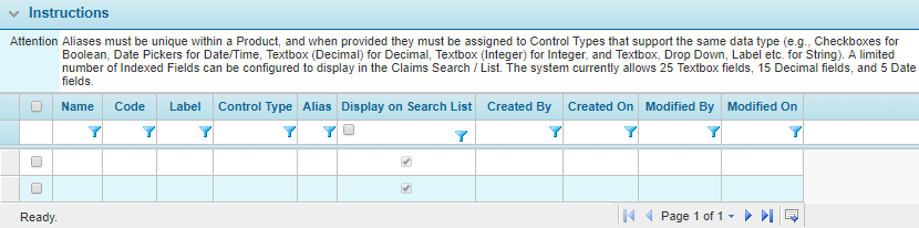 Note: To successfully create indexed fields, the Product code must be identical to the Claims Workflow code.