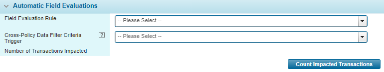 Tip: The Count Impacted Transactions feature can be used to troubleshoot the Automatic Processing of Field Evaluation Rules by providing insight into the number of impacted transactions at any given time.