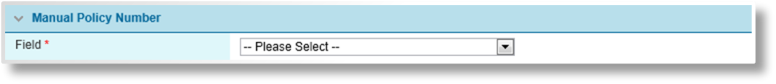 The Manual Policy Number panel is available when From a Field is selected as the Source.
