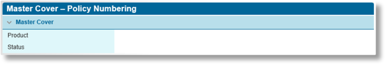 With the master cover selected, click the Policy Numbering item in the Screens widget. For instructions on finding and viewing a master cover, see the section on Viewing and Modifying a Master Cover.