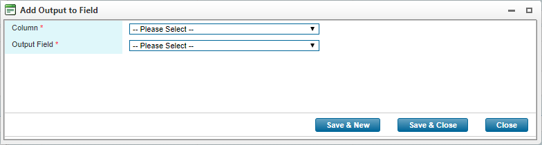 • Once all Column and Output Field associations have been made, click Save & Close.