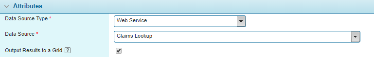 • The Output Field drop-down field contains a list of all column fields configured within the Claims Lookup Service grid.