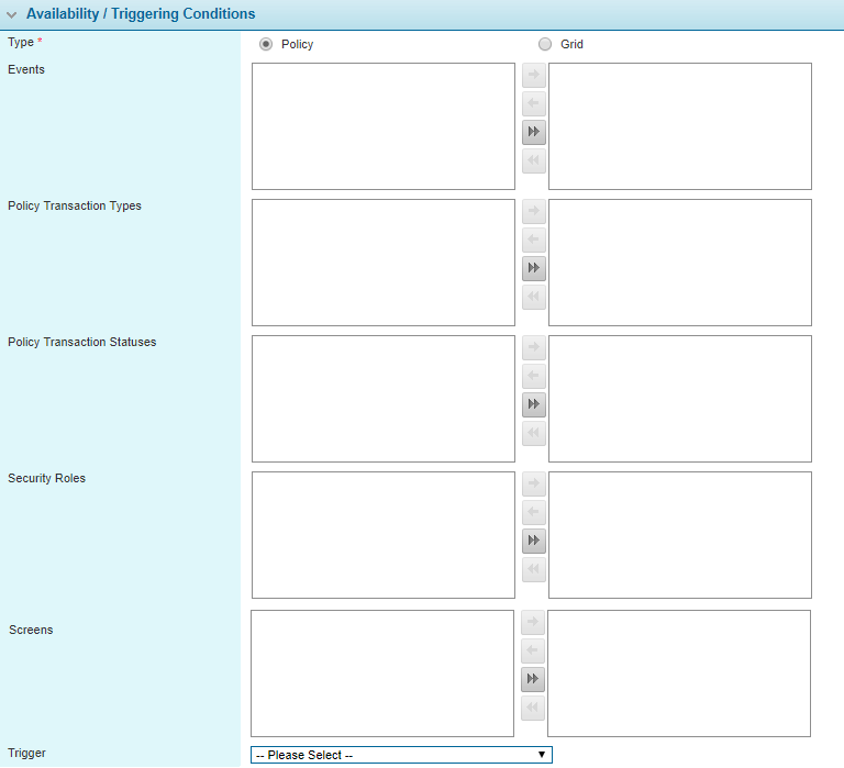 • In the Trigger field, select a Trigger to define the conditions under which the field will be evaluated.