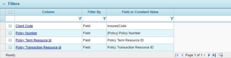 Note: The filter fields are core system fields, and do not require indexing through a Cross-Policy Data Configuration. For additional information, see the Cross-Policy Data Configurations section.
