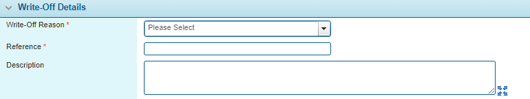 When an invoice is written off, either manually or automatically, a Write-Off Reason must be selected. The available options are defined in the Write-Off Reasons panel. See Managing Write-Off Reasons for instructions on adding and editing options.
