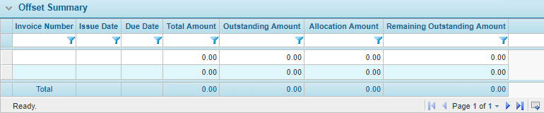 If the transaction is completed, the Invoice List is updated with the new balances on any remaining invoices.  The system generates and posts a receipt batch containing one zero-value receipt.  The receipt includes all invoice allocations from the offset transaction.