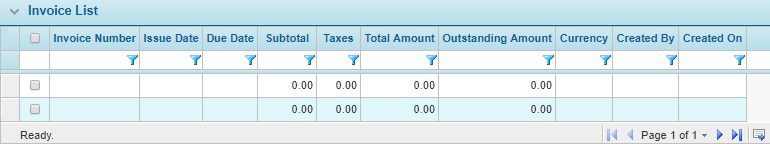 2. Select a Currency and click Search.  The Invoice List panel appears with the results.