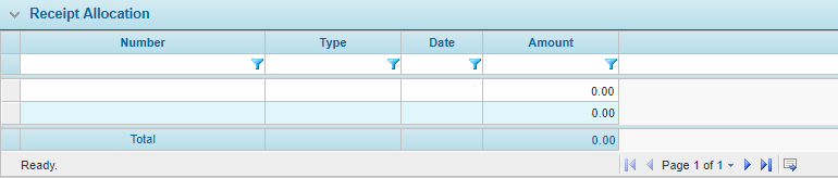 The Receipt Allocation grid lists all invoices associated to the current receipt.