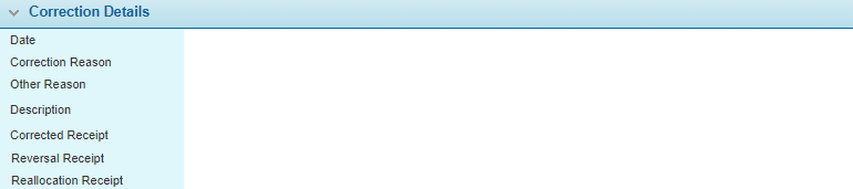 The Correction Details panel is displayed for any receipts that have been corrected, or for the correction receipts themselves.